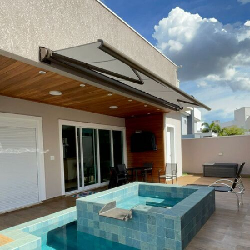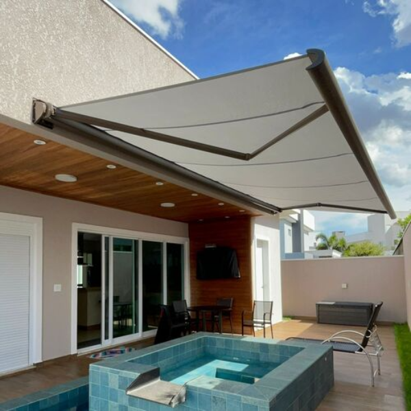 Quando o toldo é recolhido, o box de alumínio protege eficazmente o tecido e os componentes contra chuva, vento e sujeira.